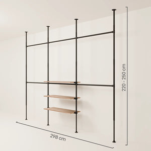 A Barra de roupas e prateleira JONTE OAK oferece uma combinação de alto espaço para pendurar e barra transversal dupla, proporcionando tanto espaço que pode suportar todas as suas roupas e ainda oferece mais opções de armazenamento com a prateleira de parede em metal e madeira. Dependendo do que você está procurando em uma barra de roupas de prateleira, aqui você encontra a prateleira de madeira e metal ideal para o seu closet aberto. Gostou da nossa barra de roupas de prateleira, mas está prestes a se mudar e não tem certeza se ainda vai servir? A prateleira de parede em metal e madeira é facilmente expansível, pois seu design inteligente permite que você a ajuste conforme suas necessidades atuais.