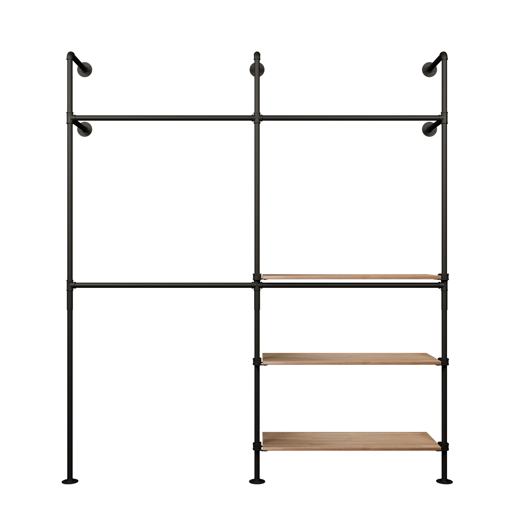 Por isso, a prateleira com barra de roupas KIM DOUBLE 2 OAK 3 no design industrial da pamo. é exatamente o que você precisa: